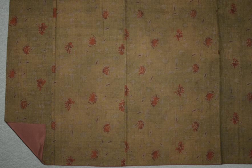 渋桑茶色生紬草木染め小紋着物