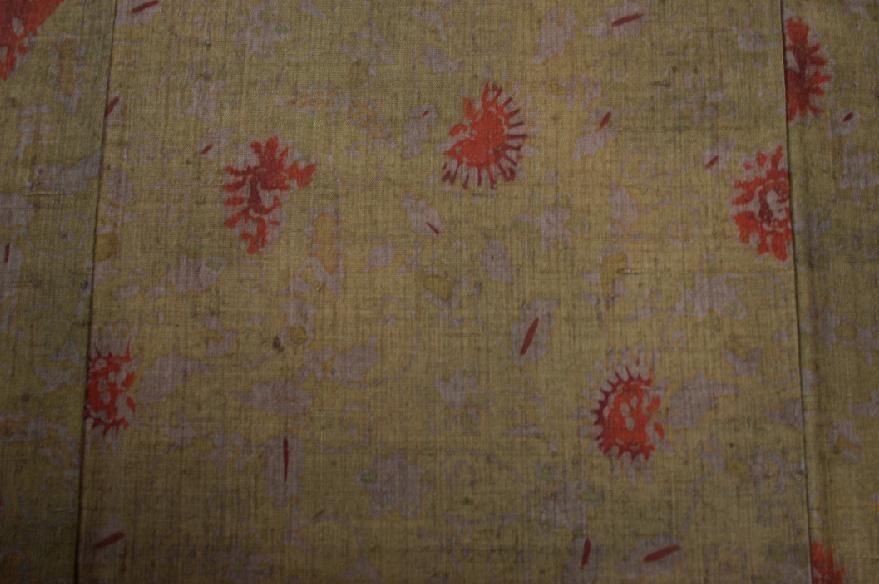 むっくりした生紬の生地。渋い桑茶色草木染めの希少な図柄の小紋着物です