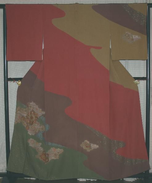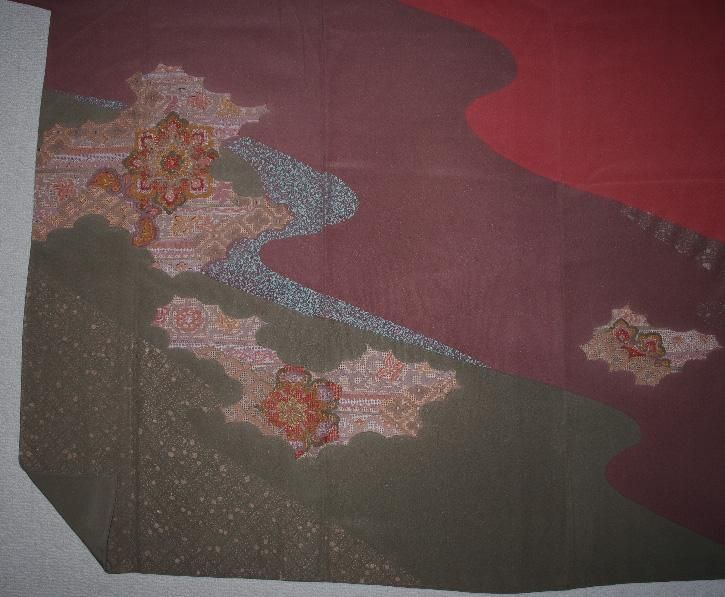 流水に染め分け・汕頭刺繍訪問着(希少品です)
