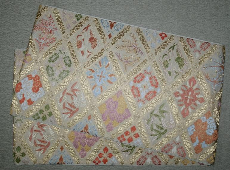 「川島織物」謹製・クリームイエロー菱文様袋帯(お勧め品です)